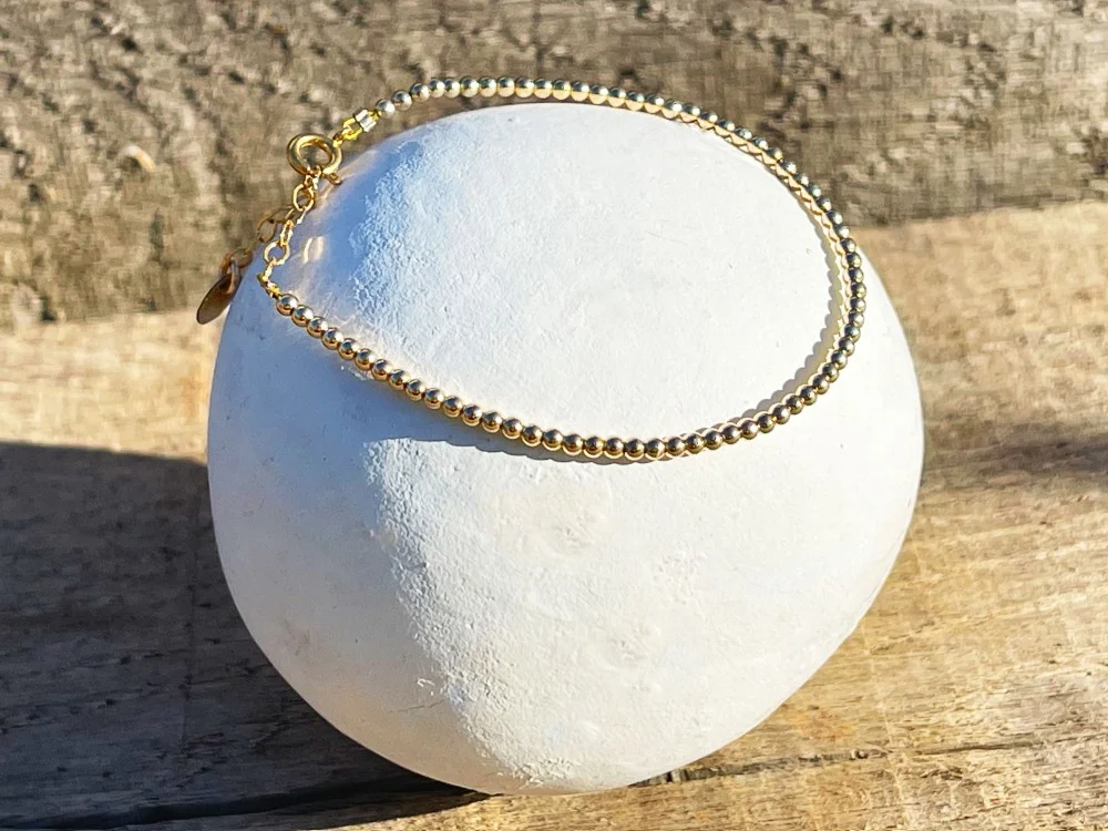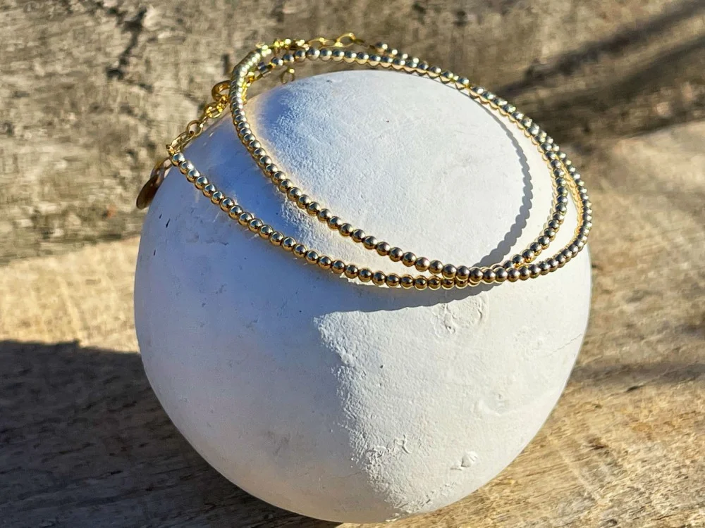 Chaînette réglable et perles dorées en Gold filed.